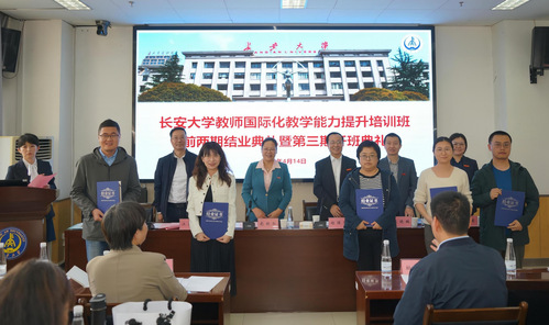随后,出国留学人员培训部副院长薛敏向大家介绍了西安外国语大学出国留学人员培训部的基本情况及本期培训的课程计划与安排,出席领导为前两期参训教师颁发了结业证书。