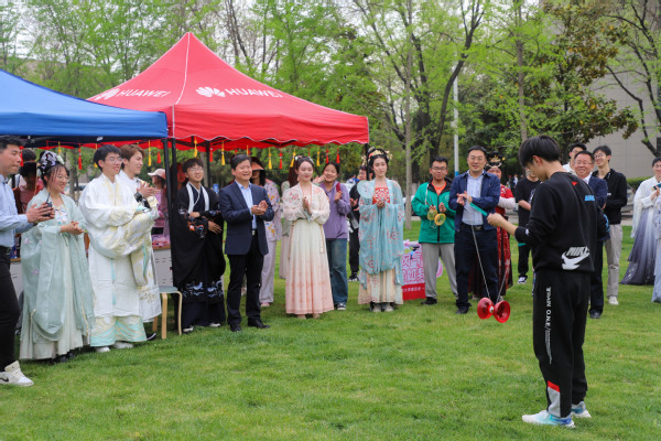 现场师生观看了大学生艺术团、中华传统文化协会、国学社等学生社团带来的器乐、舞蹈、诗词吟诵等传统文化表演,一起体验投壶、书画、飞花令、剑舞等传统文化项目。会场表演中,汉唐乐舞《礼仪之邦》彰显汉服之美,传播礼仪文化;情景朗诵《书声回响》彰显青年意气,表达爱国之情;歌曲《青春》展现着长大青年朝气蓬勃的精神风貌,各个学生社团的精彩表演获得现场观众阵阵掌声。除主会场精彩表演外,活动专设“指尖乾坤·镌刻永恒、以武会友·四海同春、墨香书韵·信笔芳华、书山有径·学海泛舟、云锦风气·霓裳如梦、沙影流光·艺境惊人、匠心相传·风雅长安、向阳而生·舞动青春”八个主题分会场,国际留学生、少数民族等学生纷纷穿上汉唐服装在分会场参与象棋、沙画、射艺等体验性打卡活动,同学们在活动中充分感受了中华优秀传统文化的魅力。