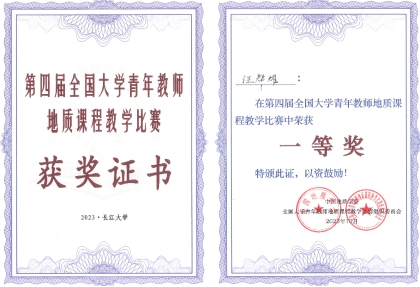 开云青年教师在第四届全国大学青年教师地质课程教学比赛中获一等奖