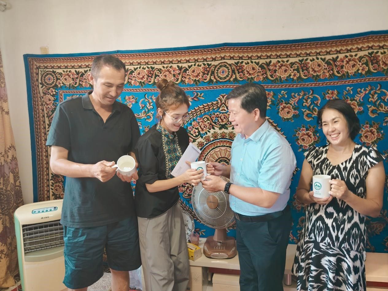 黎开谊一行走访了库尔勒市维吾尔族学生家庭,代表学校对学生及家长进行了亲切慰问,勉励该生积极进取、刻苦努力,他表示学校将永远作为广大学子坚强后盾;看望慰问了水环学院“铸牢民族之魂·润疆绽放青春”暑期社会实践队,鼓励实践队员要传承发扬民族团结精神,当好民族团结进步的宣传者、示范者和践行者,铸牢中华民族共同体意识。