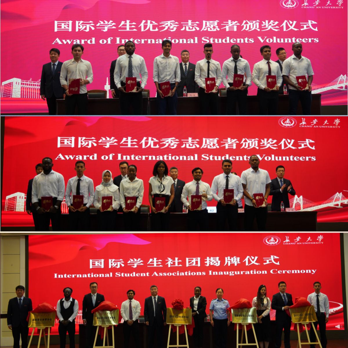 张伟宣读了优秀国际学生志愿者表彰名单,与会领导为学生颁发证书,并共同为五个国际学生社团揭牌。
