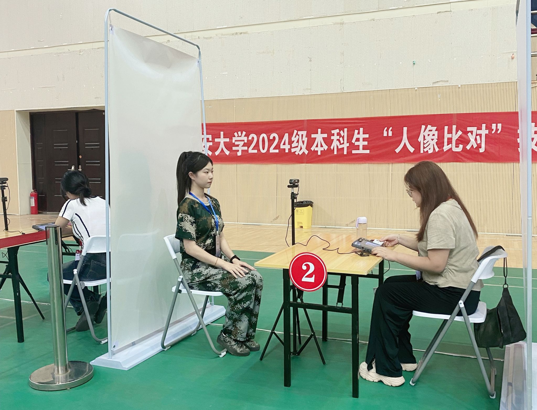 “人像比对”技术核查是新生入学资格复查的重要环节,通过比对现场采集照片与高考录取照片、身份证照片,精确核验新生身份,严防冒名顶替。9月6日,学校在南校区体育馆设置6个采集通道,完成经济与管理学院和马克思主义学院新生“人像比对”工作;9月8日,学校在东区长安文化艺术中心一楼大厅、西区修远教学楼二区一楼大厅设置两个采集点,设置13个采集通道,完成北校区所在学院“人像比对”工作;9月12日,完成预科新生“人像比对”工作。