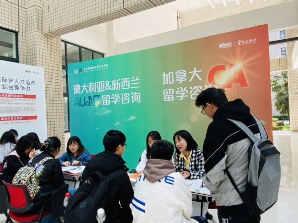 本次活动邀请多位嘉宾,设置生涯咨询、留学咨询、院校答疑、语言指导、职业发展咨询、学长学姐现身分享、大咖讲座等多个项目,分别为升学、留学及就业发展提供全面咨询和指导。负责英、美、加、澳、亚、欧板块的专业咨询师为同学们提供留学、学业、职业发展的规划指导,一对一沟通交流海外求学录取新形势新变化,解读学校特色优势、专业设置及申请要求。活动还设置学校国际合作与交流处展位,提供学校有关海外研学项目、国家公派项目、海外硕士直升等项目咨询。活动共持续8个小时,来自全校各个学院的400余名学生到场进行了咨询交流。