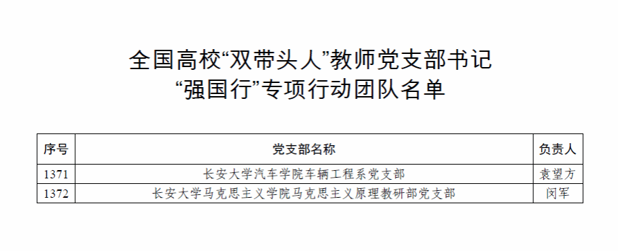 近日,教育部办公厅公布了全国高校“双带头人”教师党支部书记“强国行”专项行动团队名单,开云汽车学院车辆工程系党支部、马克思主义学院马克思主义原理教研部党支部成功入选。