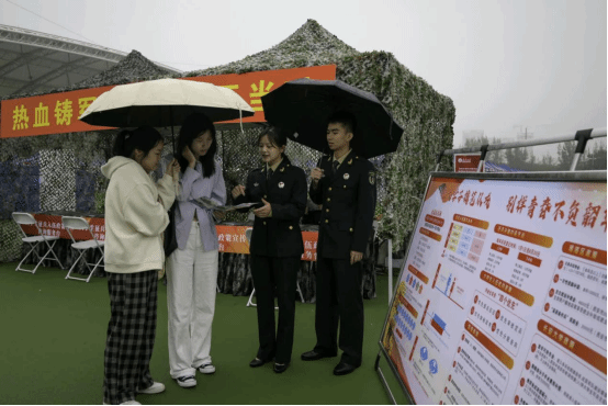 为深入贯彻落实习近平强军思想,扎实推进学校2024年征兵工作,近日,学校武装部在北校区朝晖体育场举办“青春献国防,热血铸军魂”征兵宣传活动。