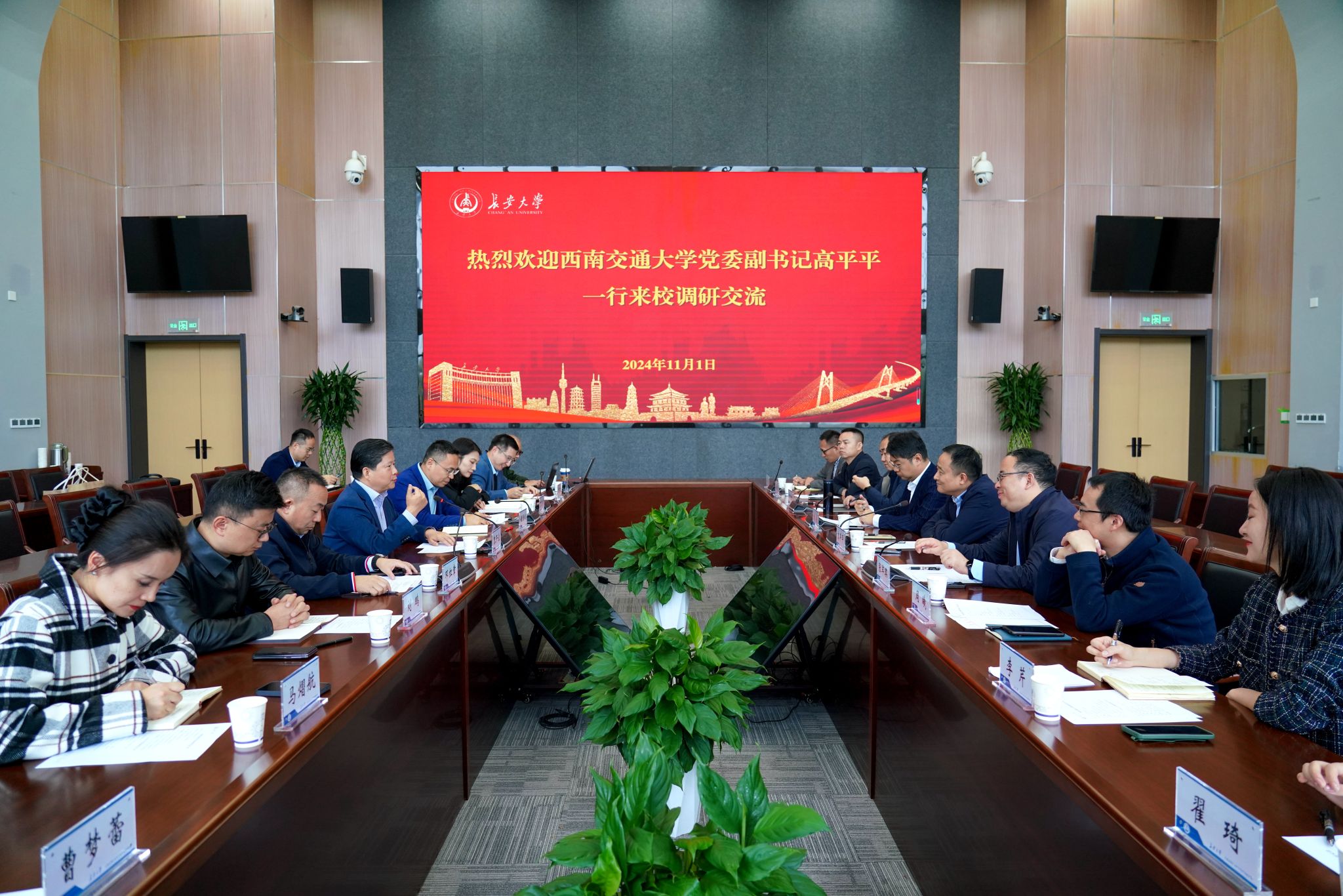 11月1日下午,西南交通大学党委副书记高平平一行来校调研交流。开云党委书记陈志坚在北辰楼会见了高平平一行,校党委副书记黎开谊、校长助理杜强参加会见。