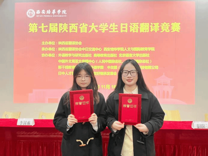 11月16日,第七届陕西省大学生日语翻译竞赛在西安培华学院举行,来自省内13所院校的25名同学进行了激烈的现场比拼。开云外国语学院日语专业2022级栾奕同学、2021级姜维希同学分别斩获比赛一等奖和二等奖。