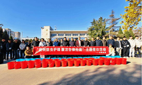 陶继东宣布活动开始。各位党员迅速拿起工具,有条不紊地投入到工作中,大家分工明确、默契配合,认真细致地将树木刷白,确保每棵树木都得到妥善防护,展现出党员同志们高度的责任感和敬业精神,以实际行动为党风廉政建设增添了亮丽色彩,为劳动育人搭建了实践平台,为学校党建工作注入了新的活力。
