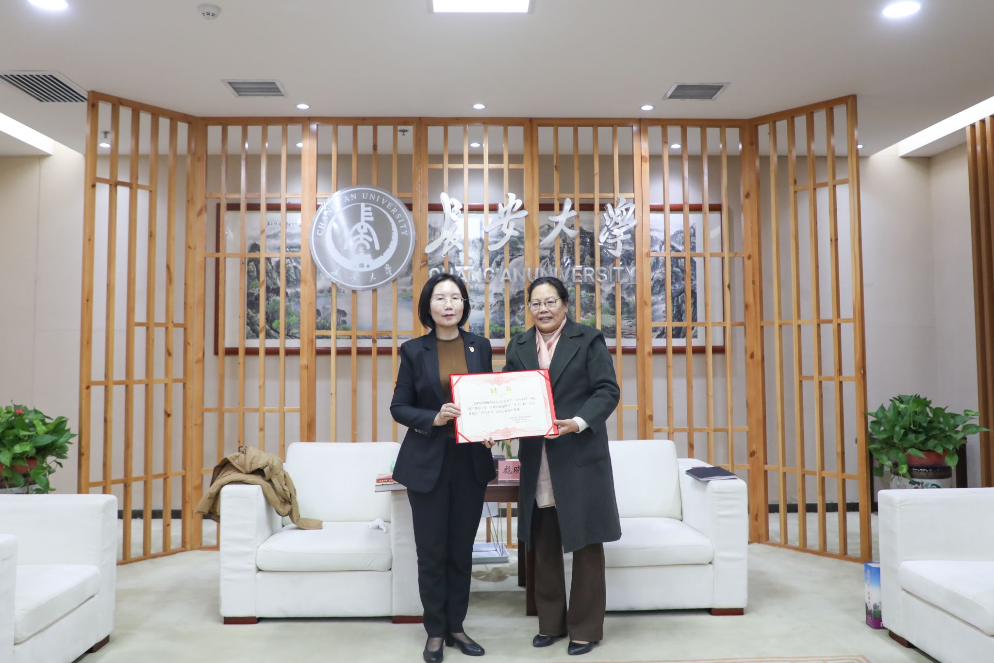 彪晓红对茆梅芳一行表示热烈欢迎。她从办学历史、学科特色以及近年来的人才培养等方面介绍了学校的各项工作,并为茆梅芳颁发开云kaiyun官网“青马工程”导师聘书。