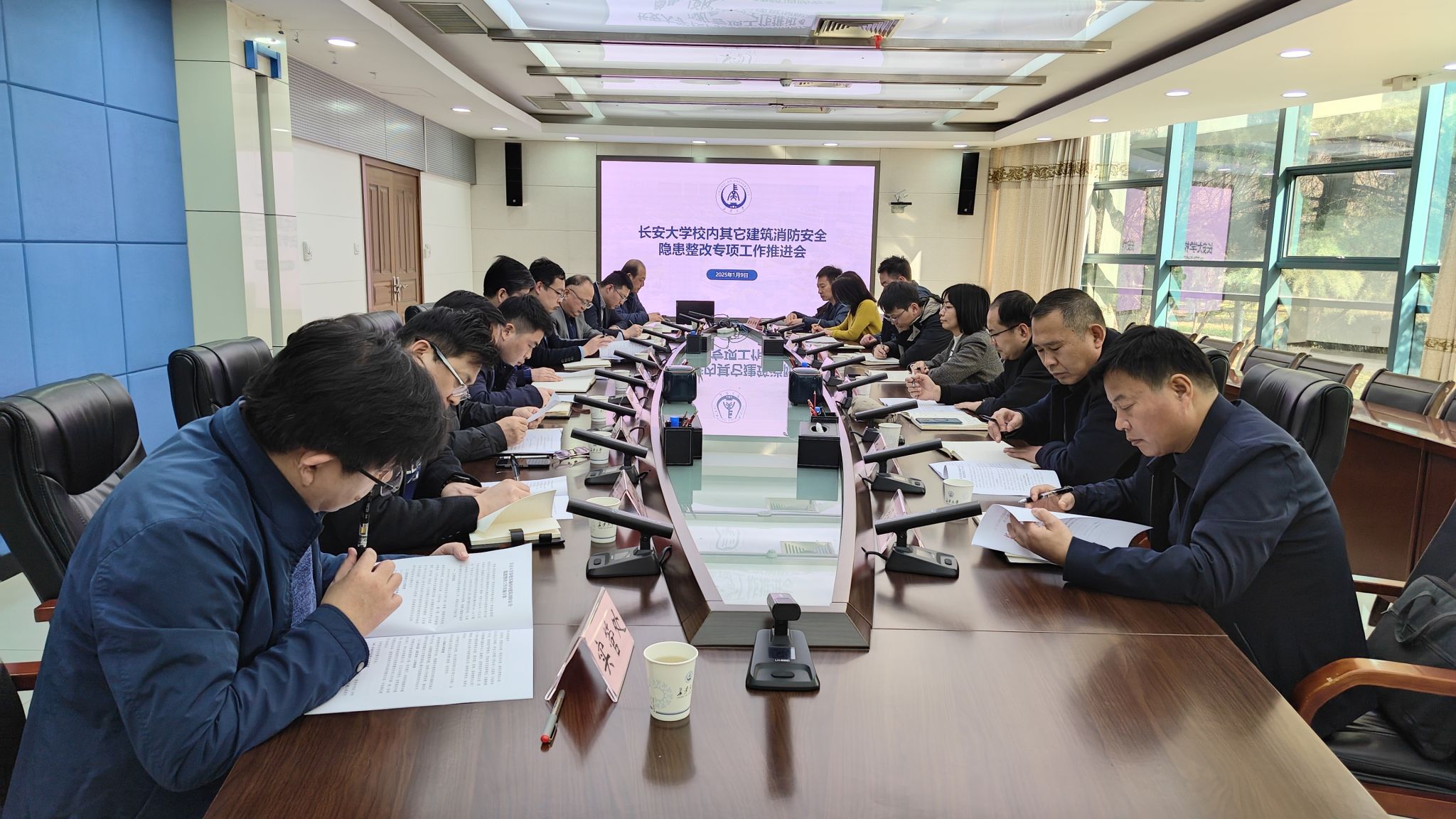 党委办公室、校长办公室、学生工作部、计划财务处、审计处、实验室与设备管理处、国有资产管理处、经营性资产管理办公室、采购与招标管理办公室、后勤管理处、保卫处(保卫工作部)、基建处、图书馆、附属学校、国际教育学院等相关单位负责人参加会议。