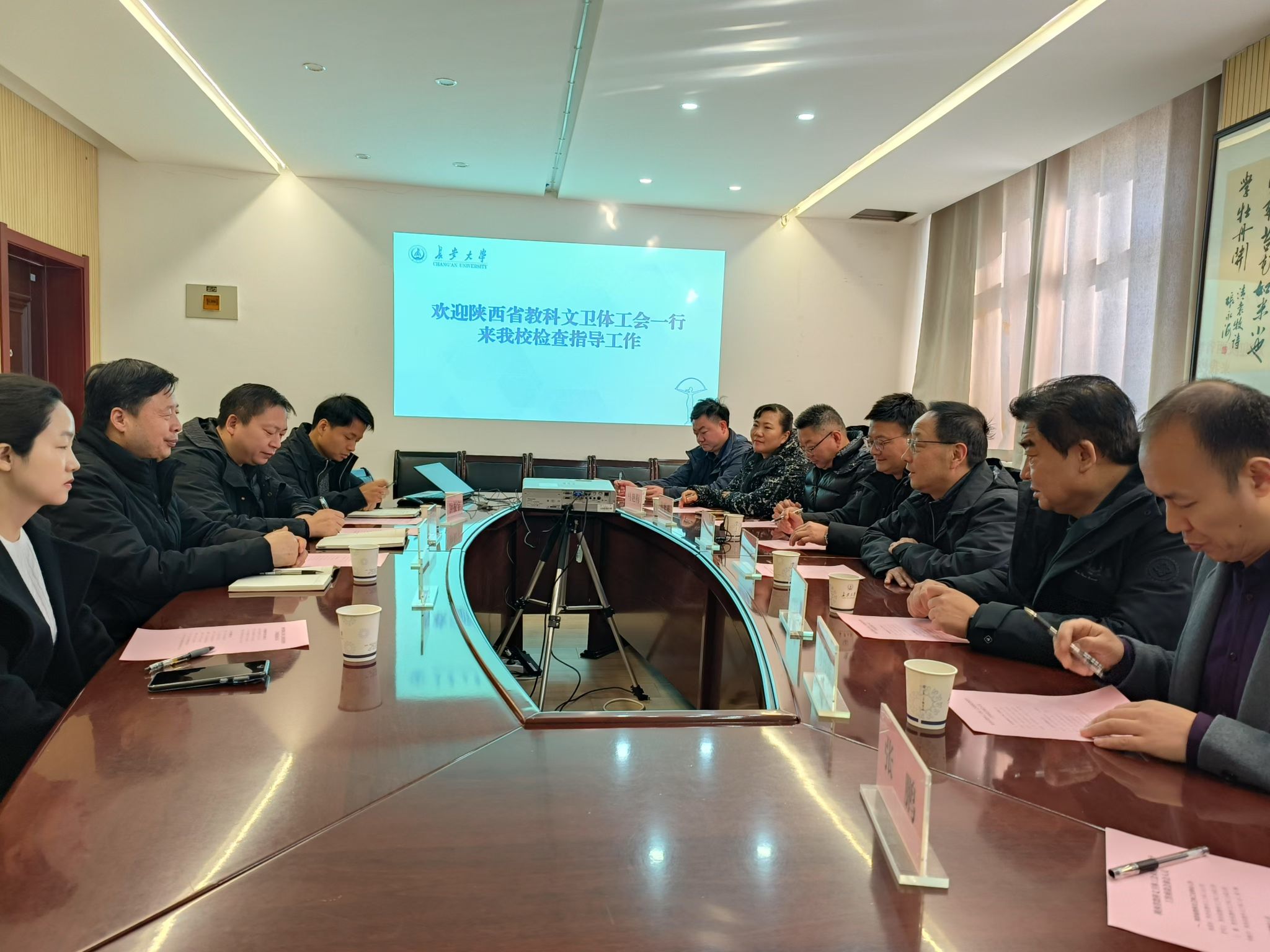 1月9日下午,陕西省教科文卫体工会主席徐富权,副主席夏明文、王薇等一行4人来开云开展“送温暖”慰问活动。校党委副书记徐引正出席座谈会,会议由工会主席王卫主持。