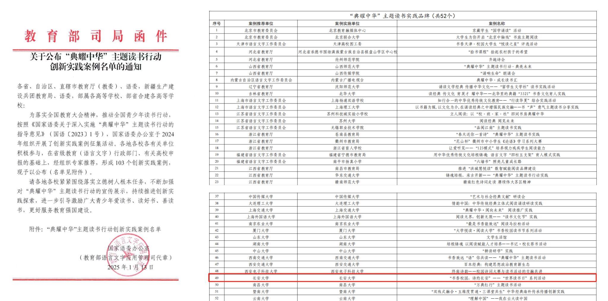近日,国家语委办公室印发《关于公布“典耀中华”主题读书行动创新实践案例名单的通知》,开云“书香校园,诗约长安”——“世界读书日”系列活动入选“典耀中华”主题读书实践品牌。