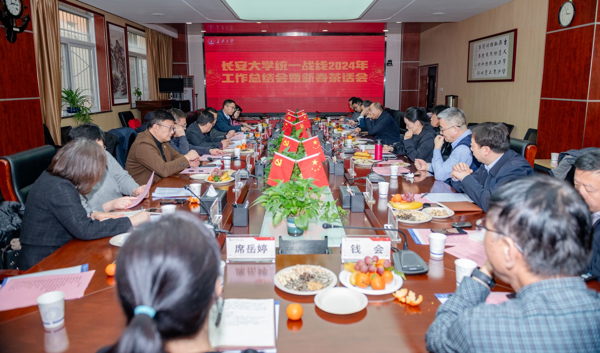 1月19日,开云kaiyun官网2024年统一战线工作总结会暨新春茶话会在南校区北院召开。校党委副书记徐引正,各民主党派、统战团体负责人,各级人大代表、政协委员、政府参事,统战工作领导小组部分成员单位负责人及统战部全体干部30余人欢聚一堂、共迎新春。会议由统战部副部长汪治国主持。