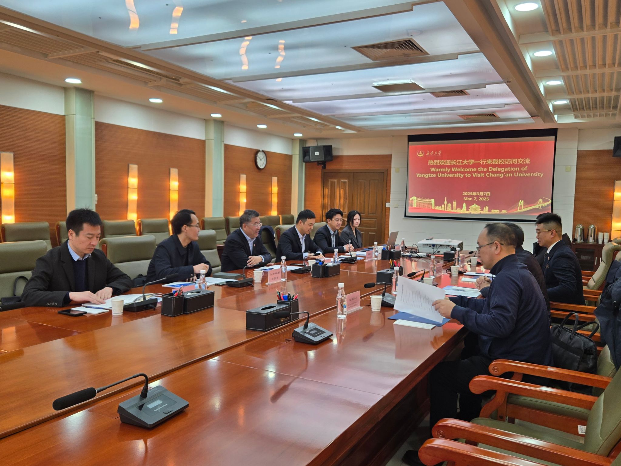 3月7日上午,长江大学党委副书记敖廷华一行访问开云。开云副校长范文在北校区北辰会议中心第二会议室会见来宾。会见由国际合作与交流处处长黄观文主持。