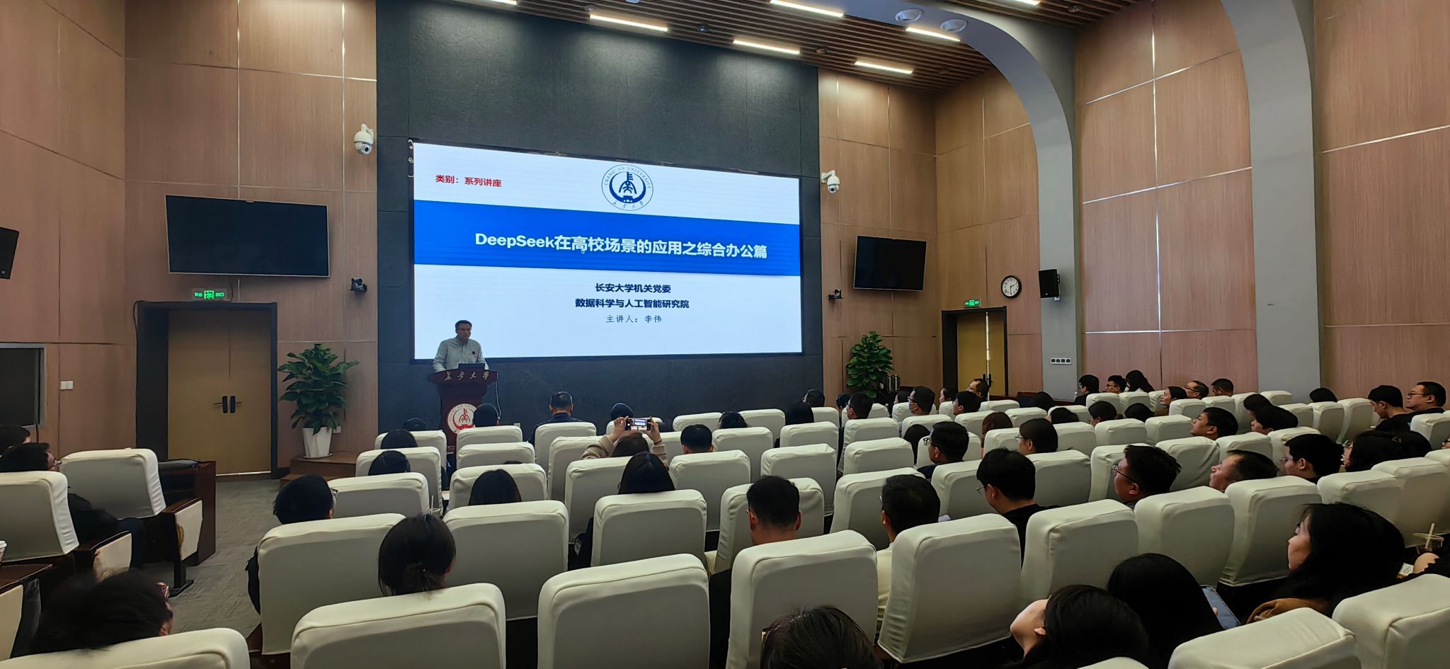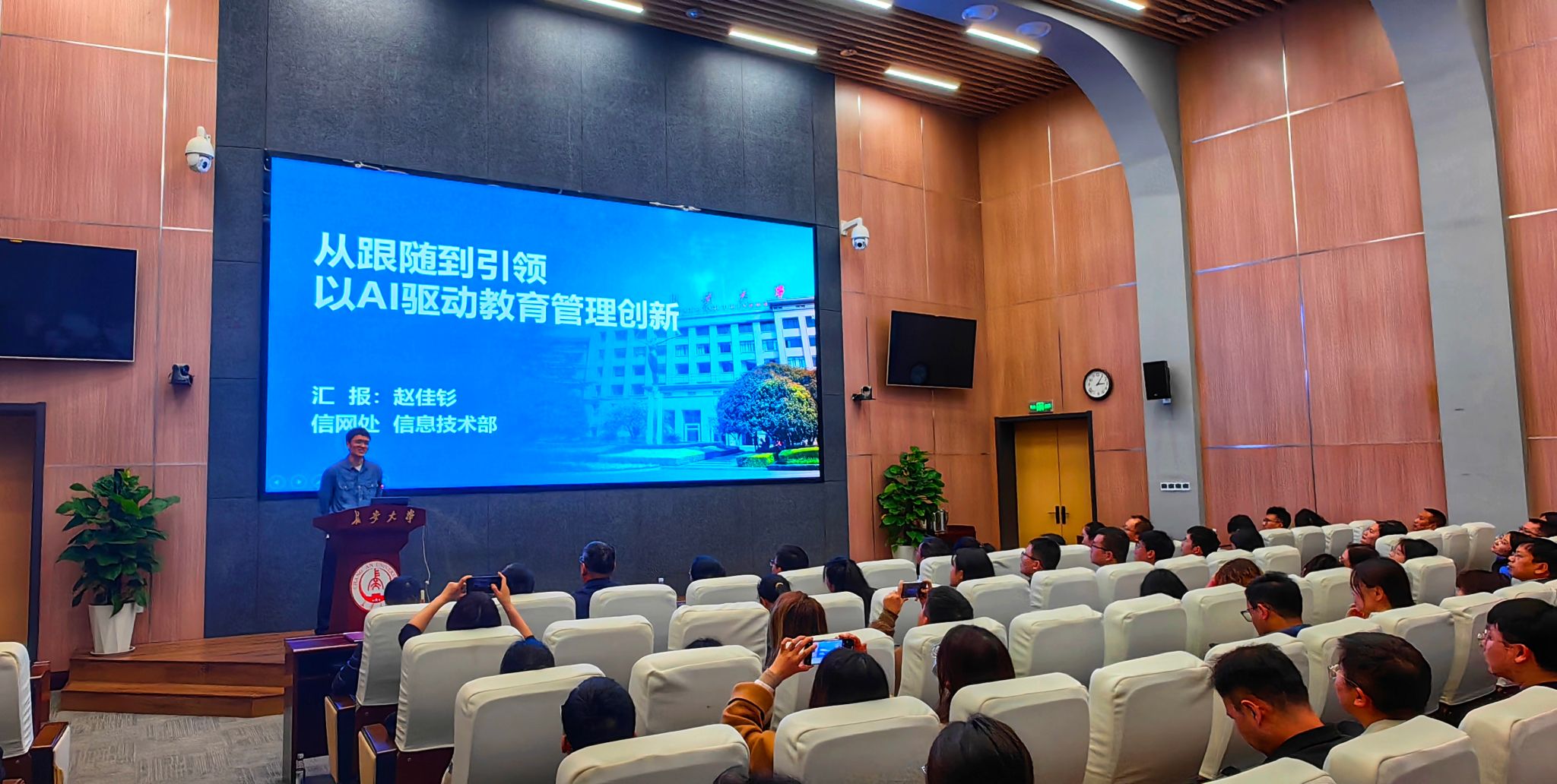 数据科学与人工智能研究院副院长李伟教授以“DeepSeek在高校场景的应用之综合办公篇”为主题,从DeepSeek是什么、为什么要学DeepSeek、如何快速使用DeepSeek等方面,深入讲解DeepSeek融入教育教学、科研、行政办公及多工具协作场景的应用。信息与网络管理处信息部主任赵佳钐围绕“从跟随到引领,以AI驱动教育管理创新”主题,从“AI算力中台、AI赋能办公应用、AI赋能教育数字化转型”等方面进行讲解,重点介绍了长大AI算力中台、智能体开发平台建设情况,并对DeepSeek在公文撰写、数据治理等多场景下的强大功能进行了演示。