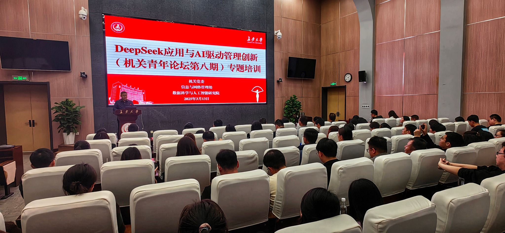 3月13日下午,学校机关在北校区师生服务大厅二层第二报告厅举办DeepSeek应用与AI驱动管理创新(机关青年论坛第八期)专题培训,机关各支部党员干部、机关青年代表共130余人参加培训。培训会由机关党委书记李金和主持。