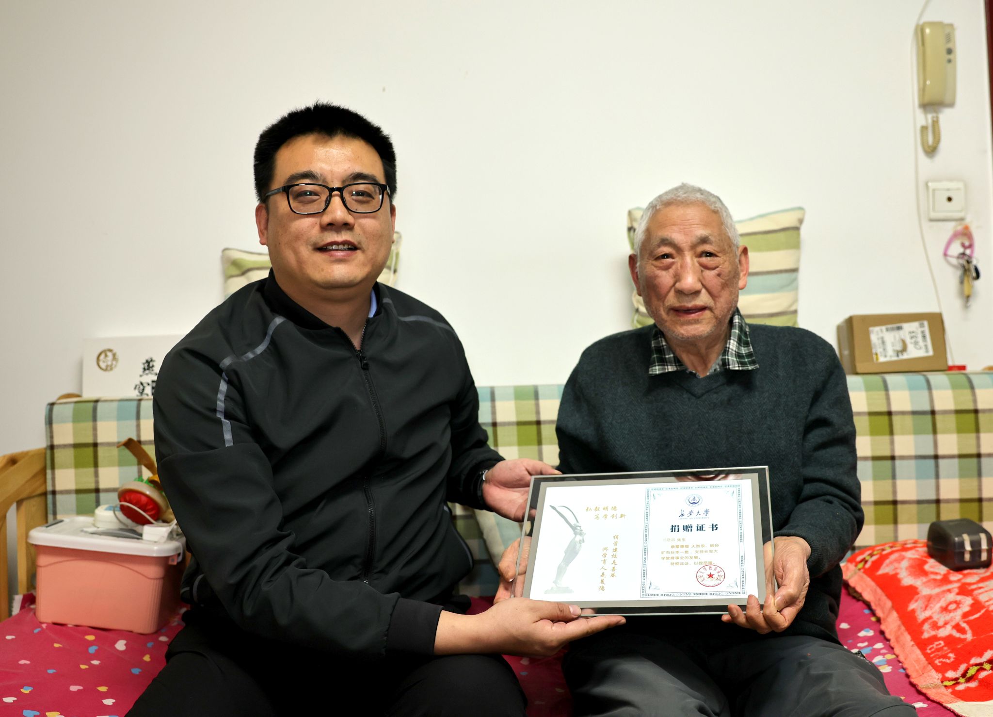 社会合作处副处长郑睿为王逢忠校友颁发了捐赠证书,对王逢忠的善举表示感谢,并向他介绍了近来来学校的发展情况。