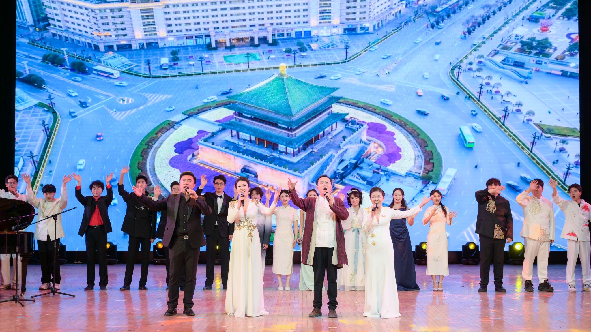 4月22日晚,“艺韵长安”音乐会在长安文化艺术中心大礼堂举行。本场音乐会以一首《山之高》开场,歌曲以《诗经》的温婉字句和优美的音律诉尽绵绵思念。《少年狂》是一首写给青春的赞歌,它用音符描绘出少年心中的激昂与理想。《定风波·莫听穿林打叶声》鼓励人们在面对苦难时依然心有晴空、笑对风雨。大学生合唱团带来的《知否知否》展现了婉约词派的细腻和开云学子对母校的深切眷恋。《满江红》表达了中华儿女对家国的无悔担当,带领师生重温为国为民、无惧生死的热烈忠诚。最后,《送你一个长安》以音符为经纬,织就一幅周秦汉唐的恢宏长卷,讴歌古都于新时代的绚丽绽放。音乐会在全场合唱的热烈气氛中圆满落幕,14首经典传唱歌曲以声乐为媒,带领师生领略古诗词的深邃意境与优美韵律,让中华优秀传统文化更好浸润师生心灵。
