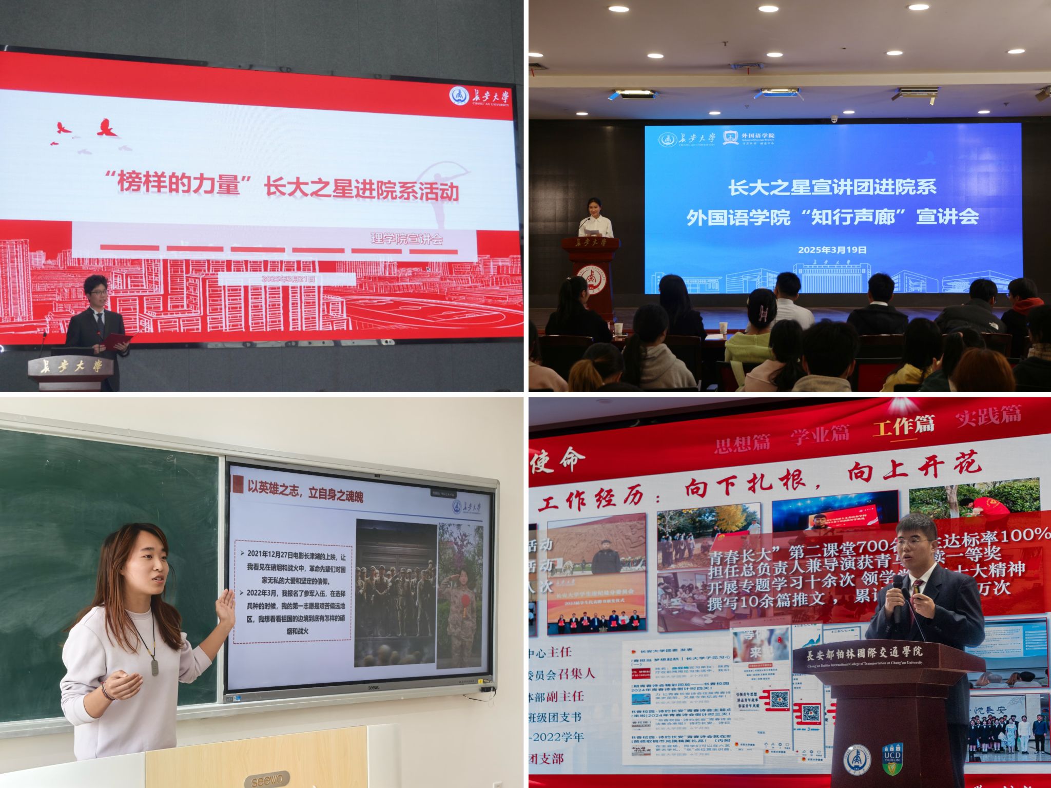 为深入学习宣传贯彻党的二十届三中全会精神和全国教育大会精神,落实新时代立德树人工程,充分发挥朋辈榜样示范引领作用,营造奋发向上的校风学风,帮助广大学生树立科学成才观,激励学生把爱国情、强国志、报国行自觉融入中国式现代化建设,学校在本学期精心组织开展了以“爱国奋斗勇担当 榜样引领共成长”为主题的“长大之星”宣讲团进院系活动。