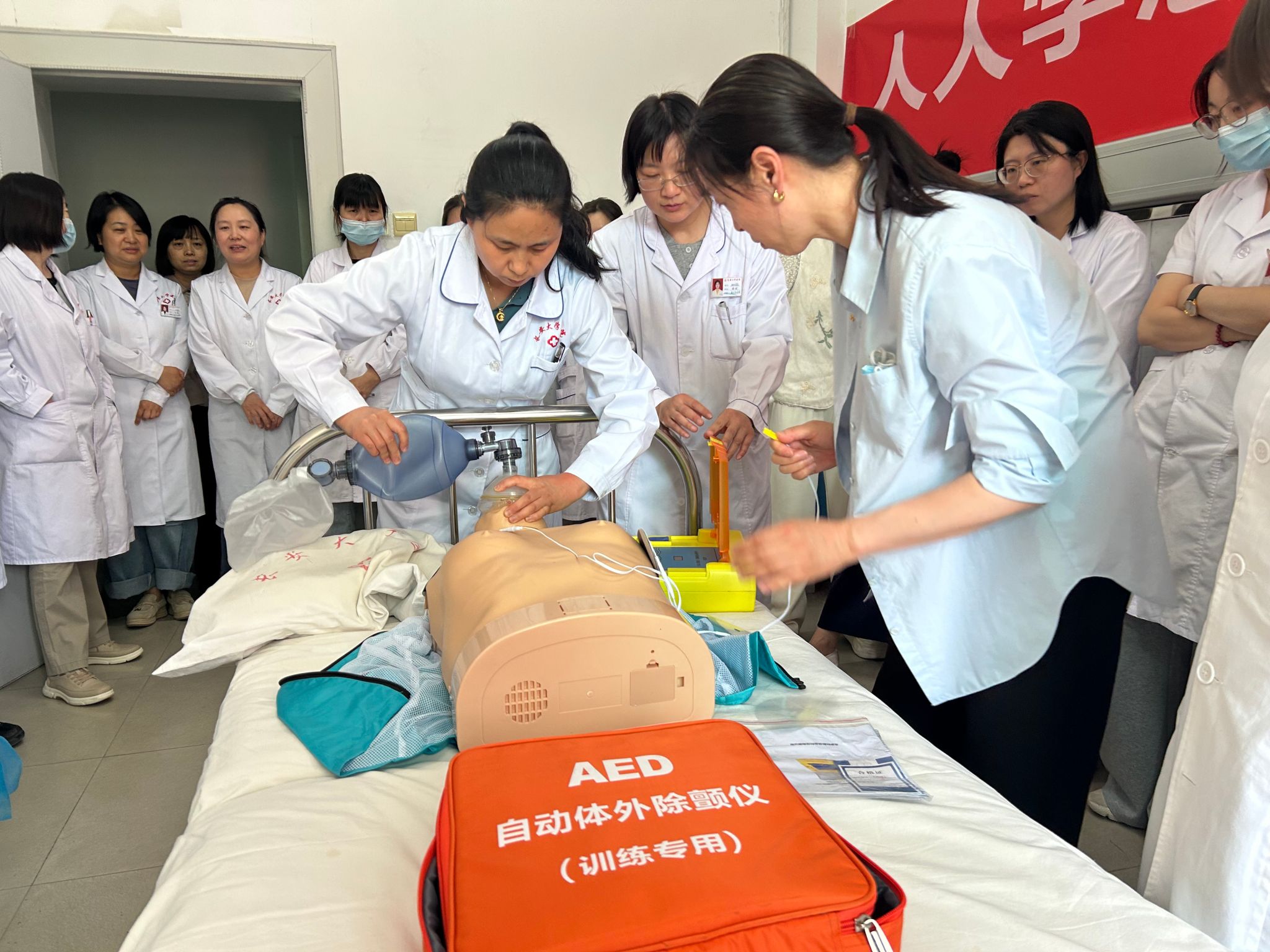 5月中旬,由校工会主办,校医院分会承办的医护人员急救技能竞赛活动在校医院拉开序幕,校医院百余名医护人员参与了心肺复苏、AED使用及海姆立克法的急救技能竞赛活动;经过多轮选拔,共评出一等奖6名、二等奖9名、三等奖15名、优秀奖70余名。