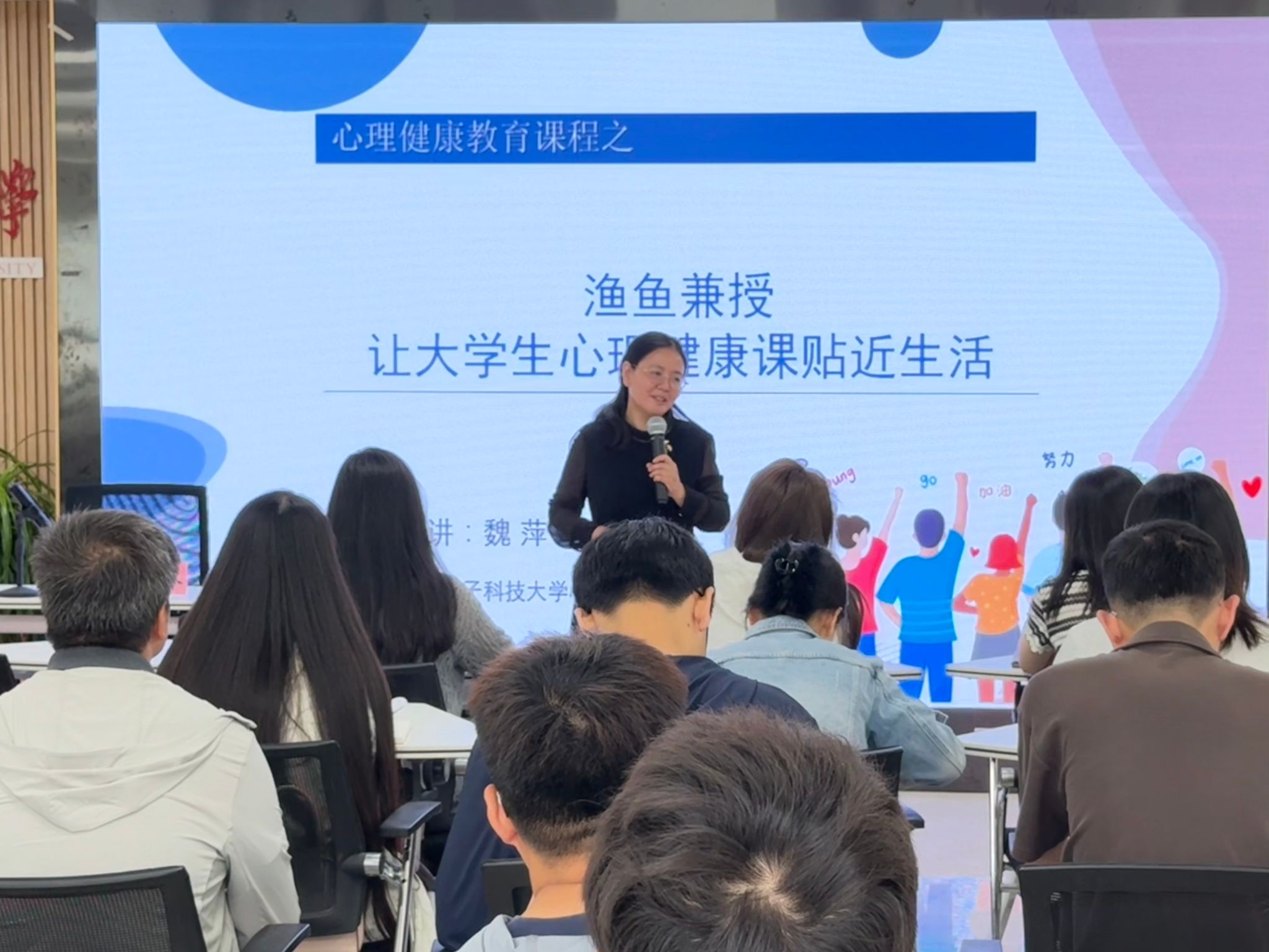 魏萍以“渔鱼兼授——让大学生心理健康课贴近生活”为主题,结合新时代学生心理健康教育课程改革相关要求,围绕“知识传授、能力培养、价值塑造”,深入剖析心理健康教育课程设计的理念,强调心理健康教育需从知识灌输转向能力培养。魏萍现场演示了如何巧妙运用学生喜爱,互动性强、参与度高的体验模式开展课堂教学,并分享了通过情景模拟、朋辈互动等实践形式,增强课堂吸引力和实效性,助力学生掌握心理调适技能的经验和方法。