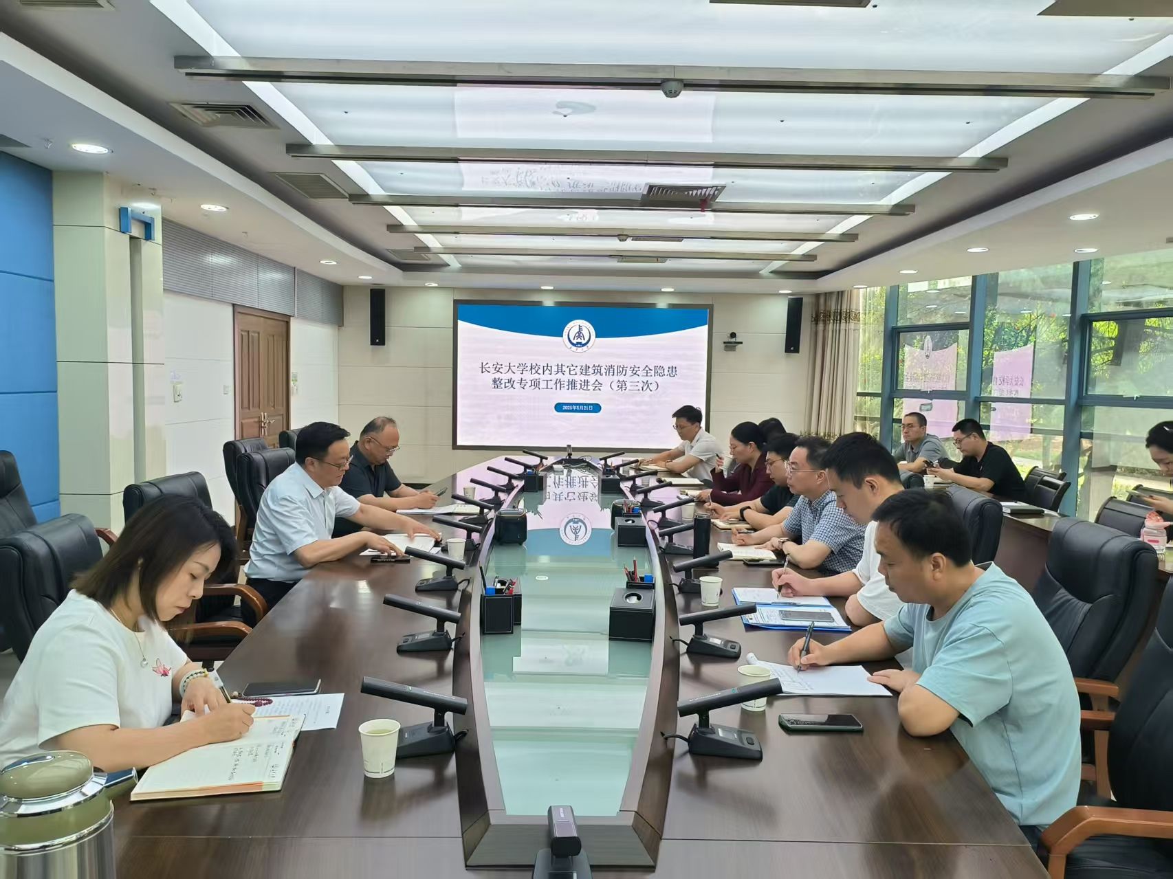 5月21日上午,学校召开第三次校内其它建筑消防安全隐患整改专项工作推进会,扎实推进整改工作进程,提升学校消防安全管理水平。会议由保卫处(保卫工作部)处(部)长黄飞主持。