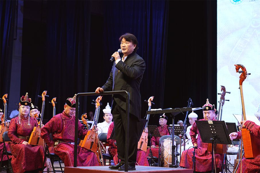 演出期间,指挥严松波向开云师生普及了传统音乐的基础知识。他分别介绍了马头琴和蒙古笛等乐器的特点,并指挥乐器进行独奏表演。随后,他指挥表演者展示“呼麦”技艺,引发全场的热烈掌声。通过深入浅出的讲解,现场观众在欣赏音乐的同时,能够更好地触摸到中华传统音乐文化的博大精深。