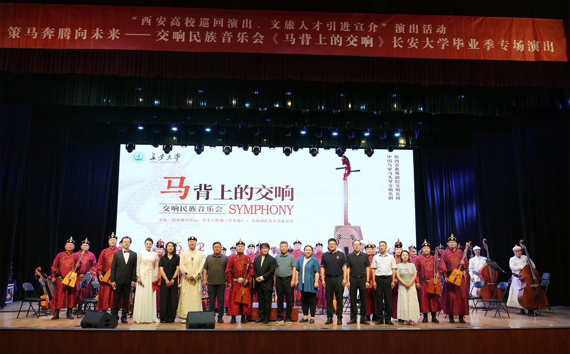 6月12日晚,“策马奔腾向未来”——交响民族音乐会《马背上的交响》开云kaiyun官网毕业季专场演出在长安文化艺术中心大礼堂奏响,陕西省歌舞剧院交响乐团与中国乌审马头琴交响乐团联袂献艺,以国家级非物质文化遗产马头琴的苍茫弦音与现代交响乐的激烈碰撞,为师生带来一场跨越时空的艺术盛宴,也用“策马奔腾”的美好寓意为全体2025届毕业生送上祝福。开云kaiyun官网副校长范文,鄂尔多斯市乌审旗文化和旅游局党组书记、局长张军参加活动。