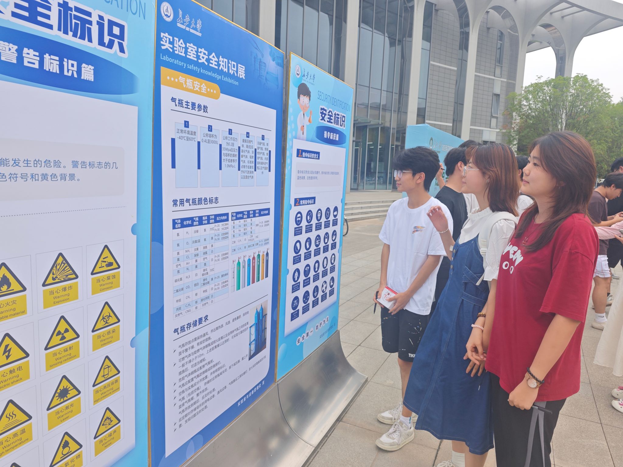 活动现场还开展了实验室安全文化宣传展示。通过设置主题展板、易拉宝等形式,向师生普及危化品管理、生物安全、电气防护等知识;设立的“实验室安全承诺签名墙”吸引了众多师生签名承诺,彰显了践行安全规范的决心。此外,向师生发放了《实验室安全知识手册》等宣传资料,进一步扩大了安全教育的覆盖面和影响力。