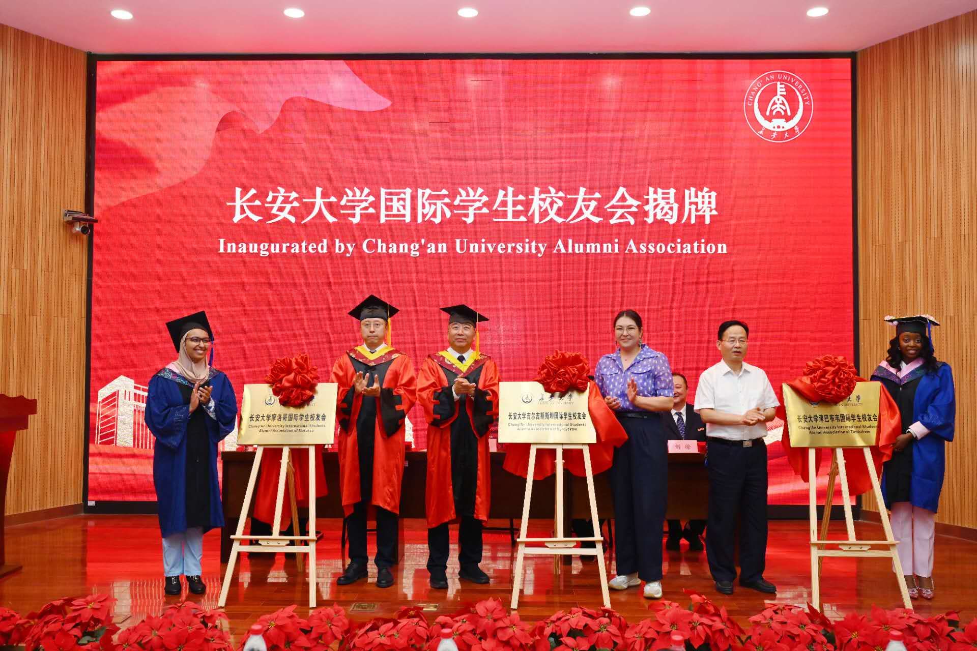 社会合作处副处长刘徐宣读新一届国际学生校友工作联络员聘任名单并颁发聘书。现场宣布吉尔吉斯斯坦、摩洛哥和津巴布韦校友会成立,范文等领导与三国校友代表共同揭牌,标志着学校全球校友联络体系迈向精细化、区域化。