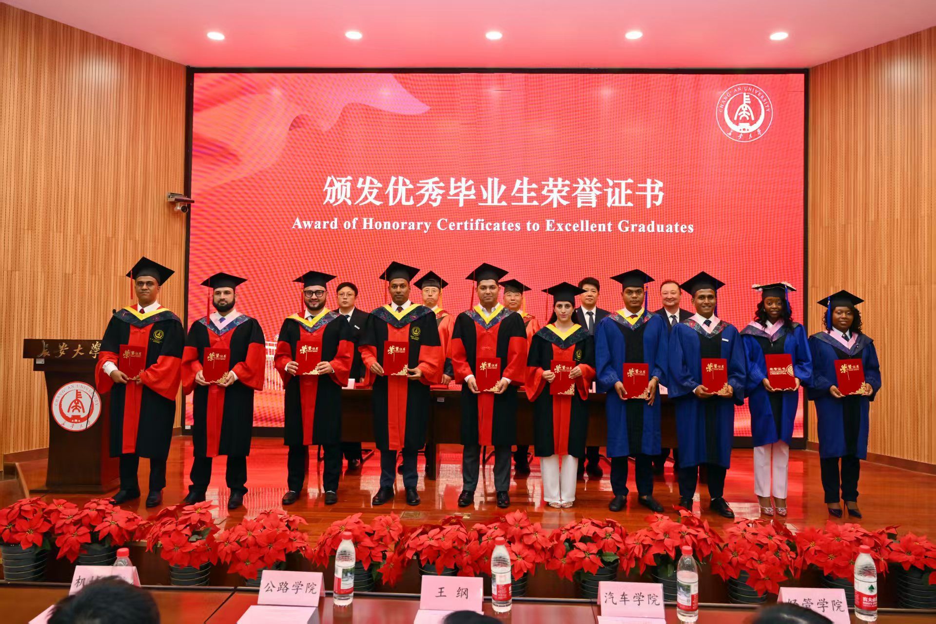 教师代表苟辰楠发言勉励毕业生坚守理想。本科毕业生代表尼泊尔学生苏池、研究生毕业生代表津巴布韦学生图西分享求学感悟,表达对未来的期许。吉尔吉斯斯坦校友代表叶丽娅以亲身经历鼓励学弟学妹服务世界。