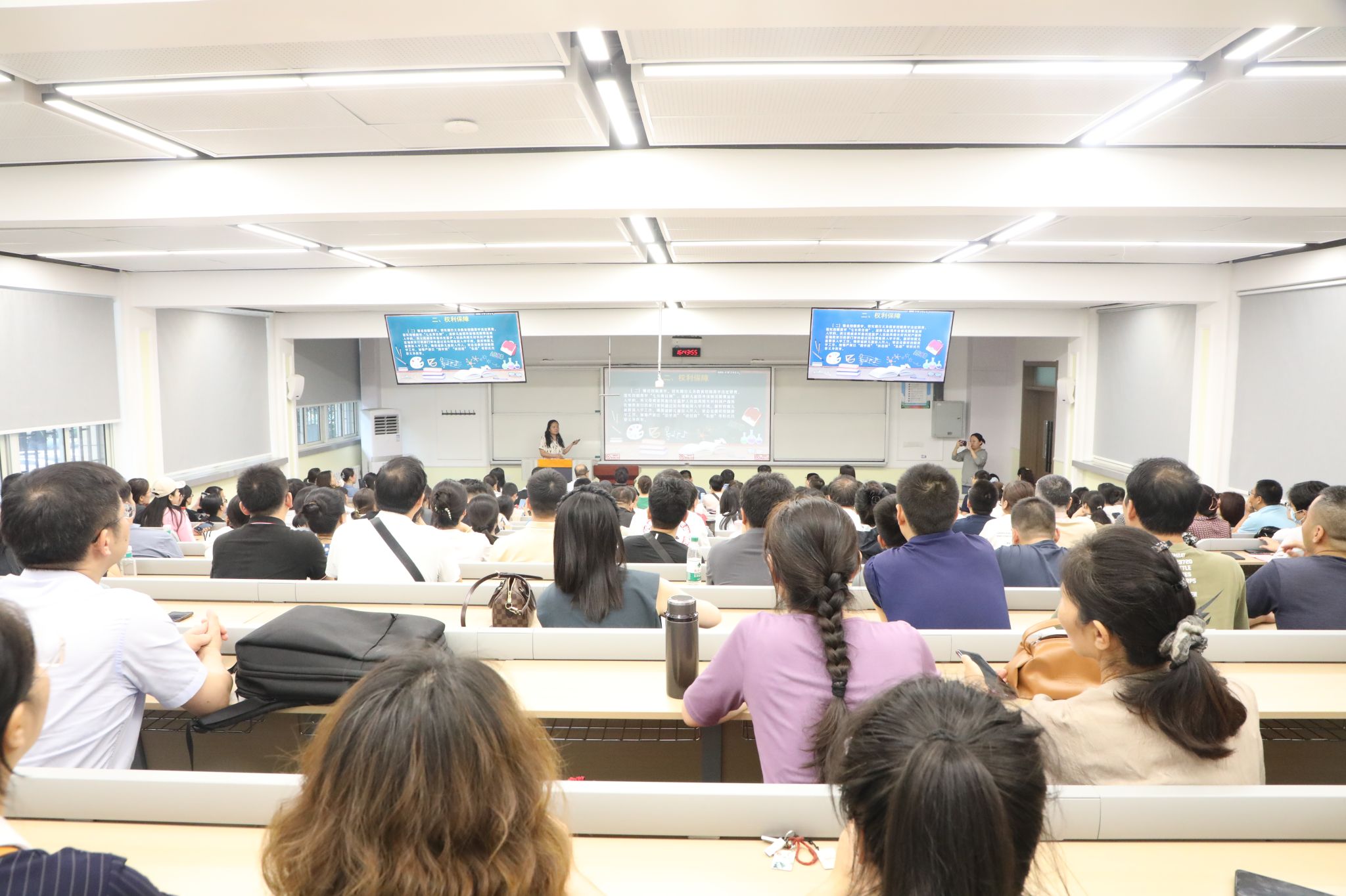 为做好教职工幼升小子女的入学服务保障工作,6月20日下午,在学校南校区北院七区171教室,基础教育办公室会同翠华路小学组织召开了幼升小入学政策宣讲会。有咨询意向的幼升小家长近200人参会,会议由附属学校校长助理兼附属小学校长李莎主持。