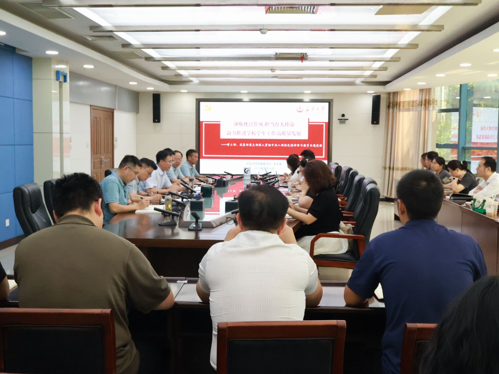 为扎实开展深入贯彻中央八项规定精神学习教育,进一步强化作风建设、筑牢思想防线,6月26日,校党委副书记李文雄讲授题为《锤炼优良作风 担当育人使命 奋力推进学校学生工作高质量发展》的专题党课。学工部、武装部党支部全体党员参加。会议由党支部书记姬国斌主持。