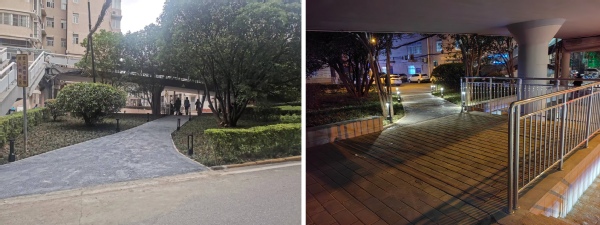 4月27日,东门天桥下人行与非机动车通道改造施工完成,项目进一步改善了教职工出行路线,并同时扩大了机动车转弯半径,有效缓解了天桥下双向行车的交通压力;此外,还扩展了人行平台并增设栏杆、修整草坪和乔木树形,并安装了草坪灯点缀,提升了人行步道两侧的景观品质。
