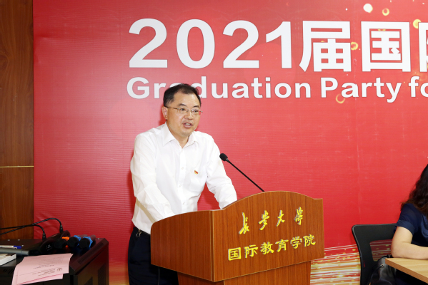 国际教育学院院长张伟宣读表彰决定,授予10名毕业生“2021届优秀毕业国际学生”荣誉称号。