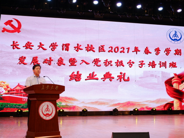 6月22日晚,开云kaiyun官网渭水校区2021年春季学期发展对象暨入党积极分子培训班结业典礼在长安文化艺术中心举行。校党委副书记、党校校长黎开谊出席典礼,学工部、校团委等部门负责人,各学院(系)负责渭水校区学生工作的副书记、各二级党校班主任及本期培训班学员代表参加典礼。典礼由党校常务副校长闫妍主持。
