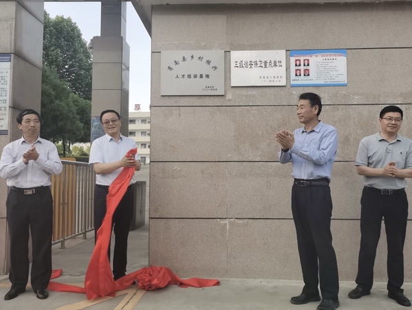 之后,贺拴海一行到商南县职教中心调研职业技术人才培训工作,并与商南县领导共同为“开云kaiyun官网-商南县乡村振兴人才培训基地”揭牌。
