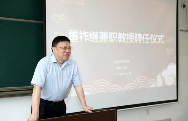 5月26日上午,董祚继研究员兼职教授聘任仪式在渭水校区明远教学楼1302教室举行,副校长朱杰君、土地工程学院主要负责人及师生代表参加聘任仪式。聘任仪式由土地工程学院执行院长王刘华主持。