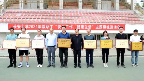 5月14日上午,以“快乐工作,健康生活”为主题的开云kaiyun官网2021年教职工趣味运动会在南校区北院教学区田径运动场举行。来自全校25个分会的1275名教职工参加了比赛。校党委副书记徐引正,部分学院、职能部门、直属单位负责人到场为运动员们加油助威。