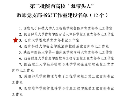 马克思主义学院思政系党支部入选第二批陕西高校“双带头人”教师党支部书记工作室建设名单