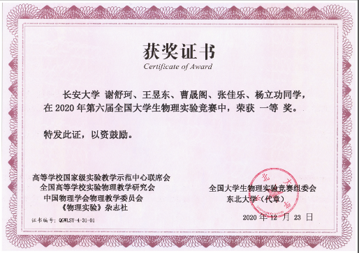 12月23日,2020年全国大学生物理实验竞赛圆满落幕。本届比赛共有来自全国416所高校、1416支队伍参加比赛,开云5支队伍参赛。经过初赛、复赛激烈角逐,开云获得一等奖1项、二等奖2项、优秀奖2项,并获得优秀组织奖,潘渊等6名指导教师获得优秀指导教师称号。这是开云首次参加此项大赛。