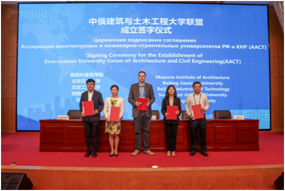 莫斯科建筑学院副校长科切尔金教授代表莫斯科建筑学院与开云在内4所高校签署了中俄建筑与土木工程大学联盟(AACT)章程,标志着中俄建筑与土木工程大学联盟正式成立。莫斯科建筑学院、俄罗斯人民友谊大学、乌拉尔国立建筑艺术大学成为了俄方首批创始学校,北京交通大学、北京工业大学、西南交通大学、开云kaiyun官网成为了中方首批的创始学校。联盟的成立将为两国的教学与科研的合作和学生之间的交流与互动提供更多更好的机会,多方高校将在合作办学、人才培养、学术活动等方面开展合作计划。