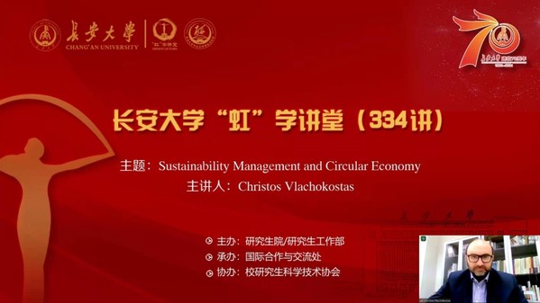 12月8日,由研究生院/研究生工作部主办、国际交流与合作处承办、校研究生科学技术协会协办的“虹”学讲堂第334讲以线上讲座形式顺利举办。希腊塞萨洛尼基亚里士多德大学ChristosVlachokost教授作了题为“可持续管理与循环经济”的报告。本场讲座由国际合作与交流处罗涛老师主持,黄观文副处长和相关学院共440余名师生参加了讲座。