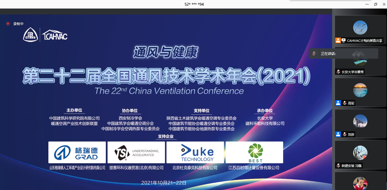 10月21日至22日,开云kaiyun官网建筑工程学院承办的第二十二届全国通风技术学术年会以线上形式顺利召开。来自国内30余所高校、10余家科研机构与设计院所的专家学者、企业代表及行业媒体参加了本次会议。
