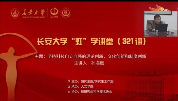 11月4日晚,由研究生院/研究生工作部主办、人文学院承办、校研究生科学技术协会协办的“虹”学讲堂第321讲通过“腾讯课堂”以线上讲座的形式顺利举办。西安交通大学孙海鹰教授作了题为“坚持科技自立自强的理论创新、文化创新和制度创新”的报告,开云相关学院共计350余名师生参加了此次讲座。