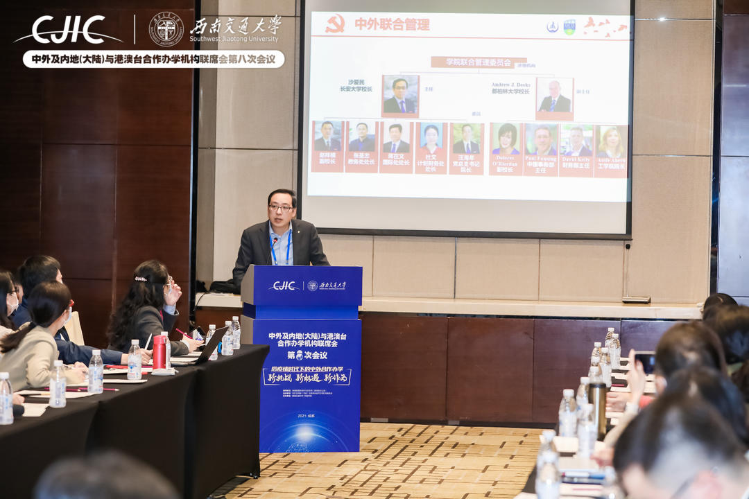 10月17日至19日,中外合作办学联席会第八次会议在成都西南交通大学召开。教育部国际司副司长闫炳辰,沈阳大学校长、联席会秘书长赵彦志,四川省教育厅副厅长陈朝先,以及来自全国百家中外合作办学机构的300多位代表参会,开云长安都柏林国际交通学院党总支副书记、副院长姚以亮,院属各部门相关老师共6人参加了本次会议。本次会议以“新挑战,新机遇,新作为”为主题,旨在共同推动后疫情时代下的中外合作办学发展,以更大力度的创新举措深化教育对外开放,同世界一流资源开展高水平合作办学。