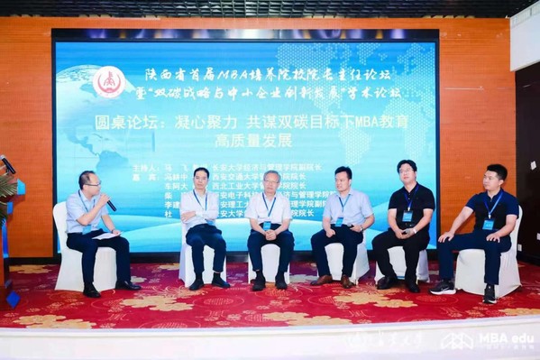要实现“双碳目标”,离不开经济结构的调整和发展方式的转型升级。特别是MBA教育如何精准地服务碳达峰这一目标、赋能碳达峰过程中的具体实践路径,是MBA教育当下亟需思考和解决的重要议题。西安交通大学MBA教育中心主任葛京教授、西北农林科技大学经济管理学院院长夏显力教授、西安工程大学管理学院副院长王渊教授和新道科技有限公司西北大区总经理张桐先生分别以“以赛事+课程共建,提升MBA学生综合能力”“双碳目标下经济社会发展转型与MBA创新发展”“丰富扎实保质量、项目嫁接显特色”“数智科技赋能MBA教育”为题对上述问题进行了有益的探索与交流;在随后的圆桌论坛上,多所院校专家学者就“凝心聚力,共谋双碳目标下MBA教育高质量发展”这一主题发表观点,建言献策。