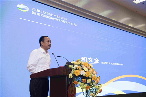 19日,大会举行开幕式并进行大会特邀主旨报告。自然资源部测绘司司长武文忠、中国测绘学会理事长宋超智、西安市副市长和文全、校党委副书记徐引正和航天宏图科技有限公司董事长王宇翔分别致辞,论坛开幕式由地测学院党委书记戴宏主持。