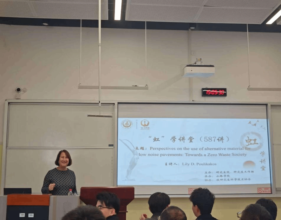10月24日下午,由研究生院、研究生工作部主办,公路学院承办,校研究生科学技术协会协办的“虹”学讲堂第587讲在南校区北院B161举办。瑞士联邦材料科学与技术研究所研究员Lily D. Poulikakos作题为“Perspectives on the use of alternative material for low noise pavements: Towards a Zero Waste Society”的报告,公路学院吕磊主持报告会,相关学院共110余名师生参加讲座。