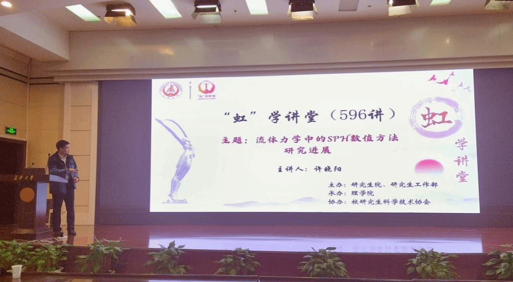 11月12日晚,由研究生院、研究生工作部主办,理学院承办,校研究生科学技术协会协办的“虹”学讲堂第596讲在南校区北院学术交流中心举办。西安科技大学许晓阳教授作题为“流体力学中的SPH数值方法研究进展”的报告,理学院党委书记屈颖主持报告会,相关学院共100余名师生参加讲座。